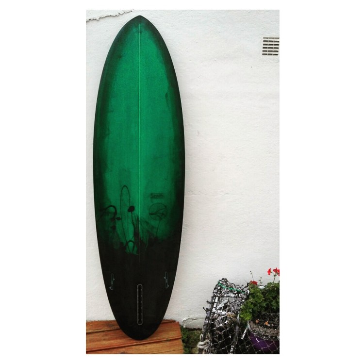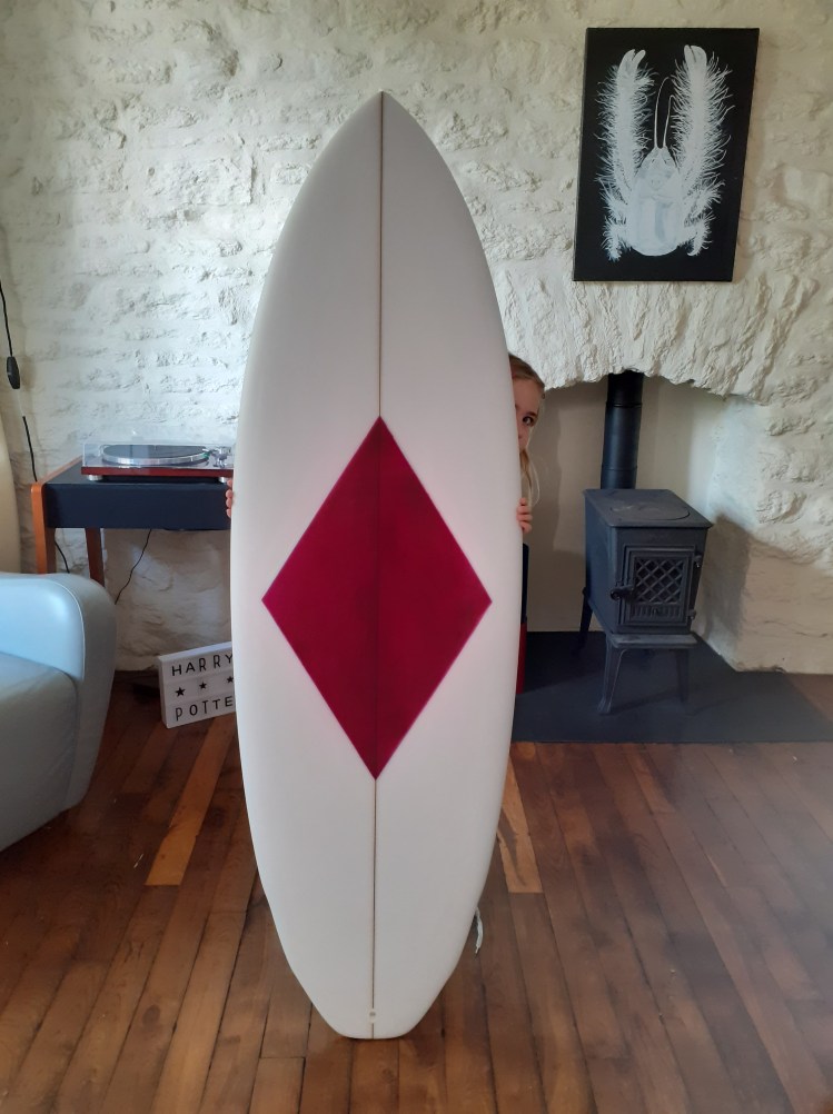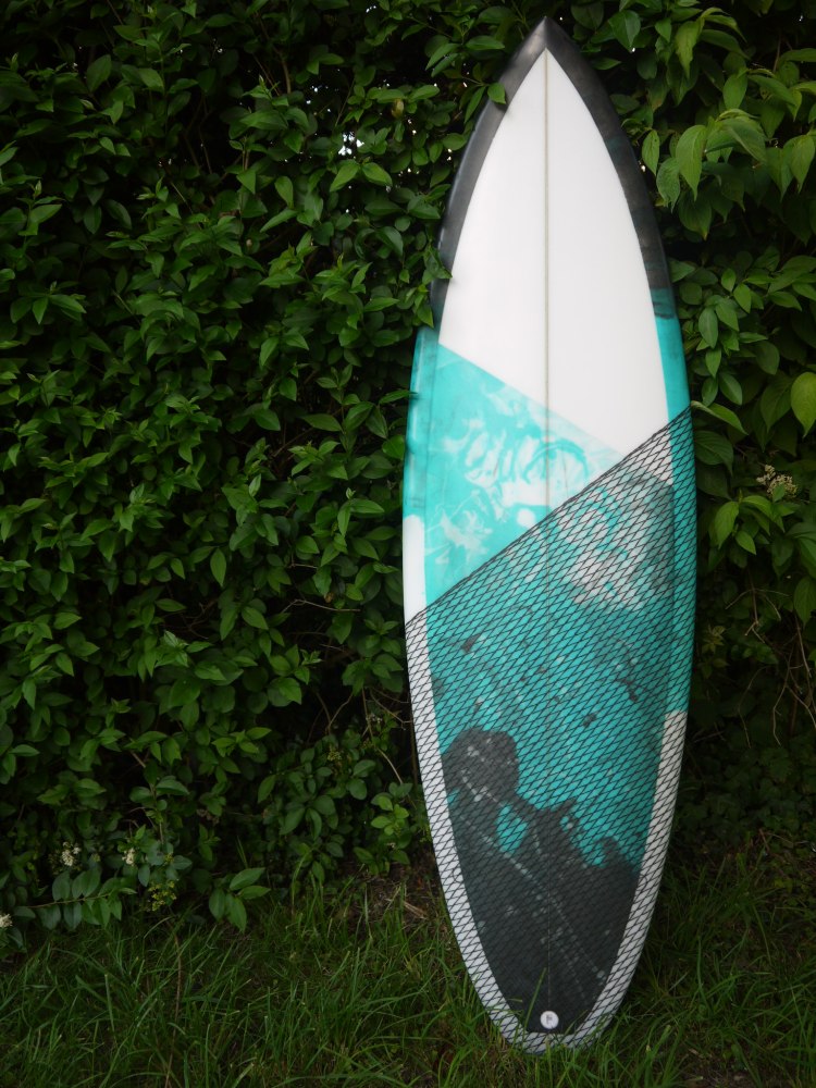 Shortboard essentiellement dessiné pour les vagues bretonnes avec son rocker médium et son extra kick tail pour plus de réponse en sortie de turn et pivot plus court dans les bottoms.